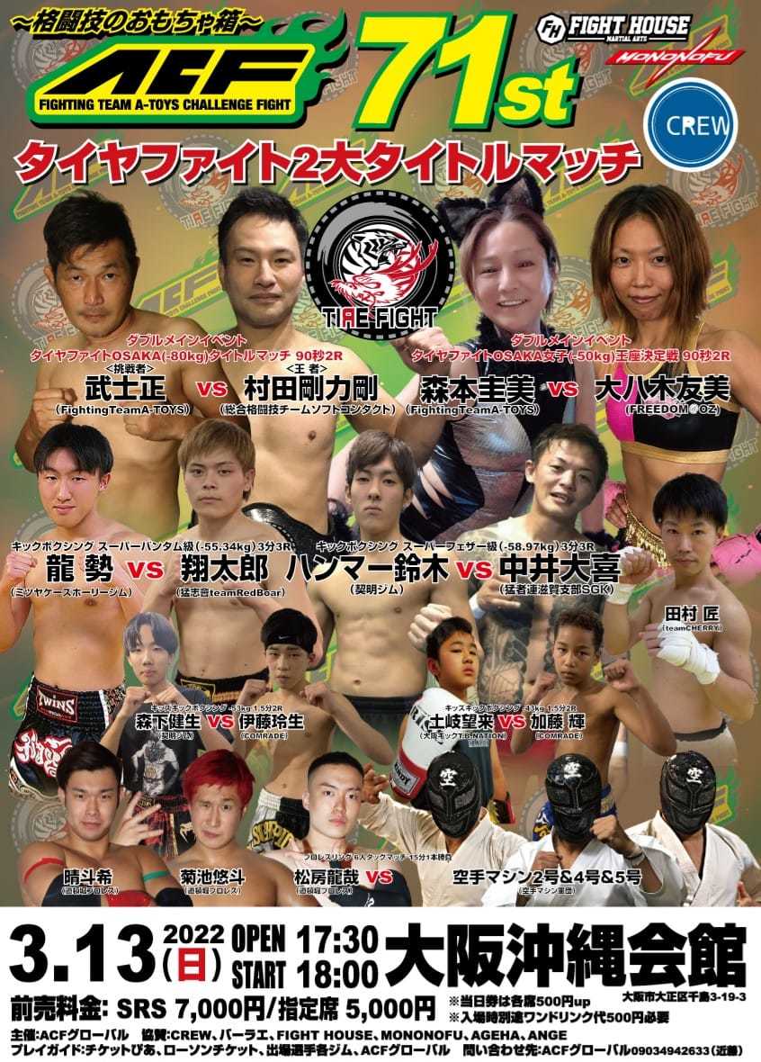 - 【格闘技のおもちゃ箱 ACF71st】~タイヤファイト2大タイトルマッチ~ 【2022年3月13日 大阪沖縄会館】