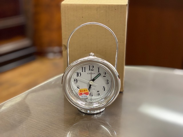- 4RE722 CITIZEN シチズン 目覚まし時計 置掛兼用 コールマン 銀 白 デッドストック品 未使用品