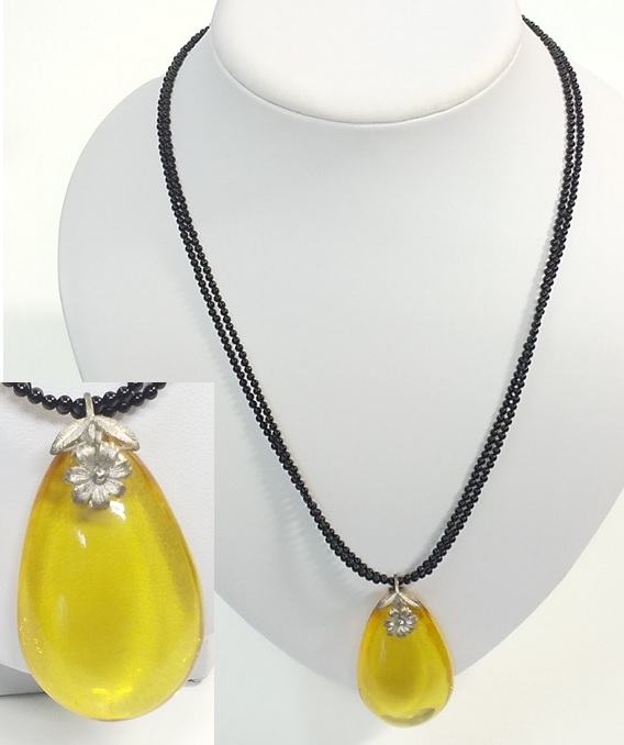 - 97★最終80%OFF 琥珀 天然石 ネックレス コニャックアンバー しずく型 K18 オニキス丸玉2連 48cm★CG575