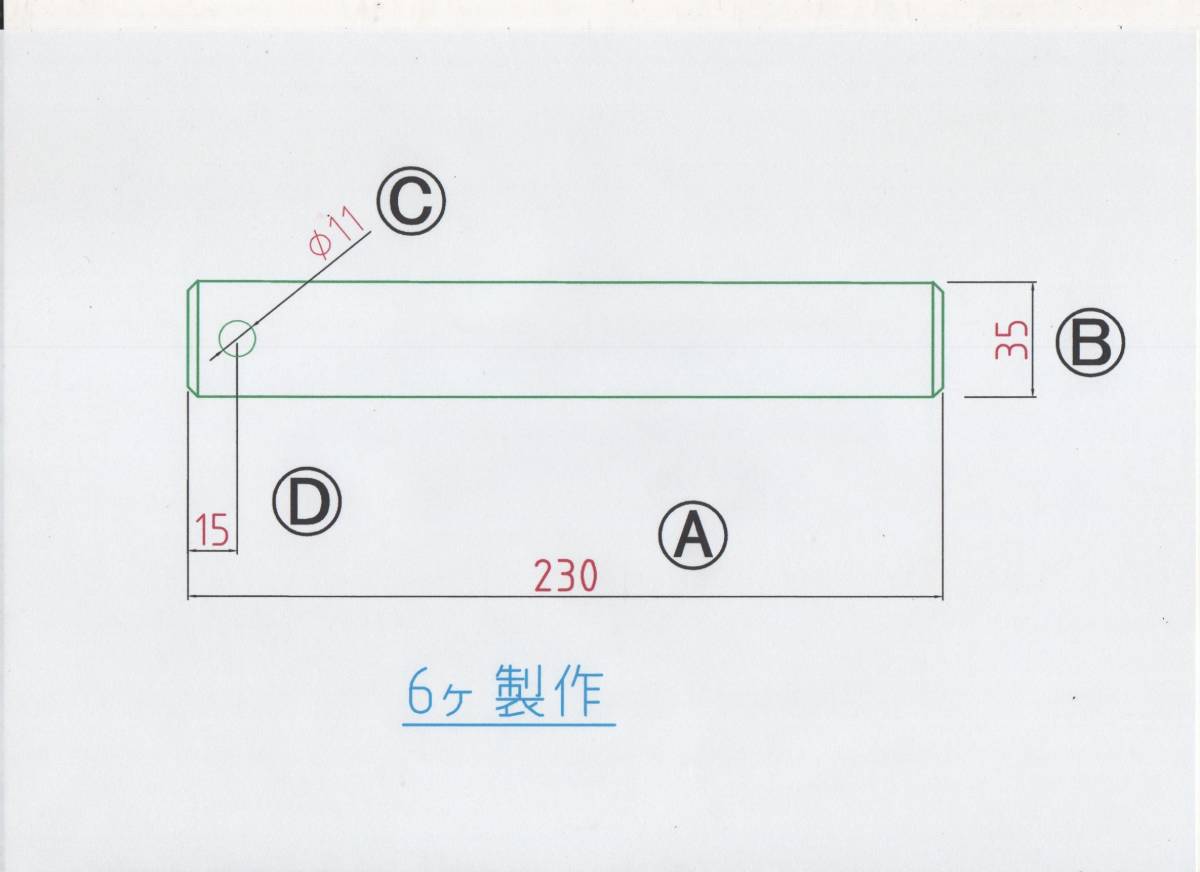 - N0.1184 Φ35用 全長230mm バケットピン 6本 1セット