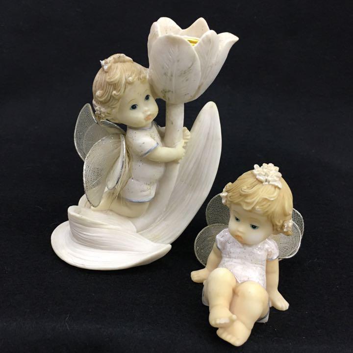 - 妖精 フェアリー ビンテージ 置物 彫刻 インテリア オブジェ 2人セット
