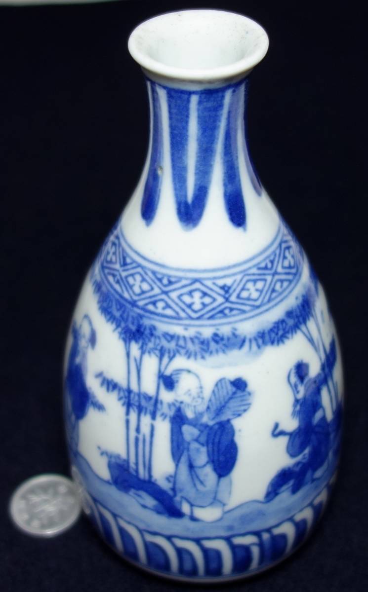 - 明治~大正期 染付 徳利 高級日本酒酒器 竹林文人七賢:韜晦図 最高峰 九谷焼 陶磁器研究