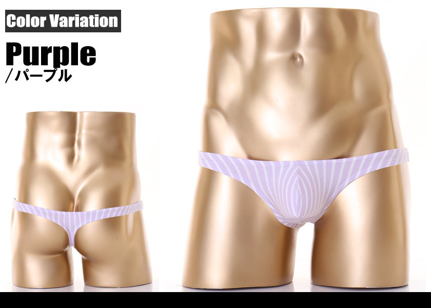 - 【送料無料】 G-station/ジーステーション 超モッコリ ストライプ柄Tバック XLサイズ パープル g-B1722DK