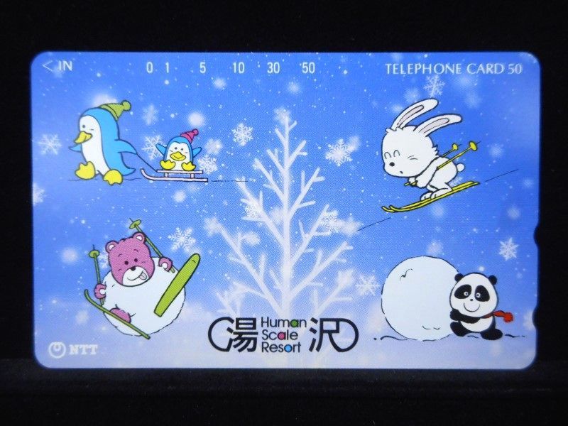 - テレカ 50度数 湯沢 Human Scale Resort パンダ ペンギン イラスト 未使用 S-0123