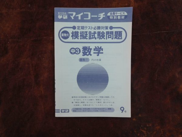 > 学研マイコーチ中学3年生 9月 数学 定期テスト必勝対策 図形(1)円の性質 昭和 未使用 実力テスト付き My Coach ドリル