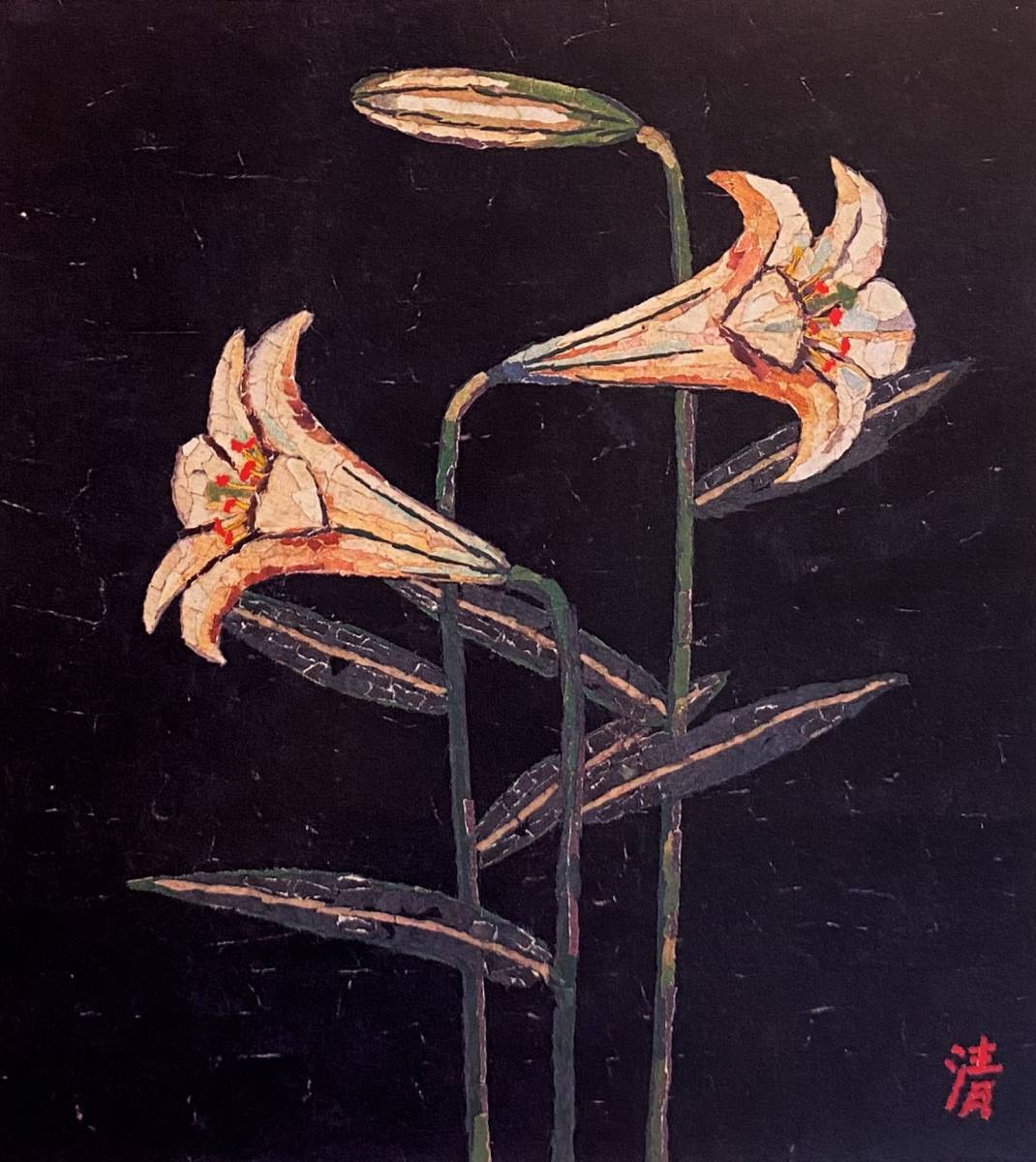 - 山下清、〈鉄砲ゆり〉、希少画集画、高級新品額・額装付、状態良好、送料無料