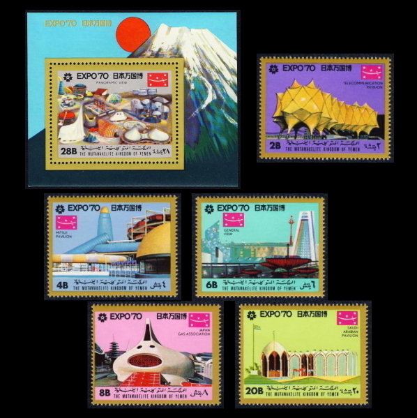 - ■イエメン切手 1970年 大阪万国博覧会 / パビリオン シート+5種完