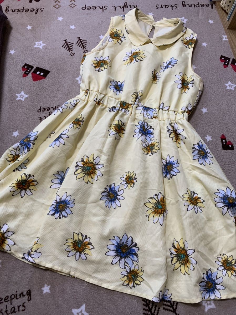 - N460/ミニワンピ/イエロー/花柄/ノースリーブ/
