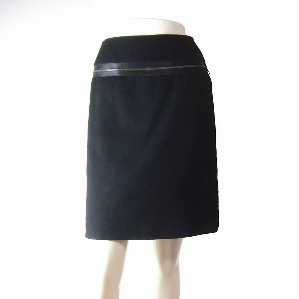 - 美品*LANVIN・ランバンコレクション*黒*圧縮ウール*ラップ風デザインスカート38/9