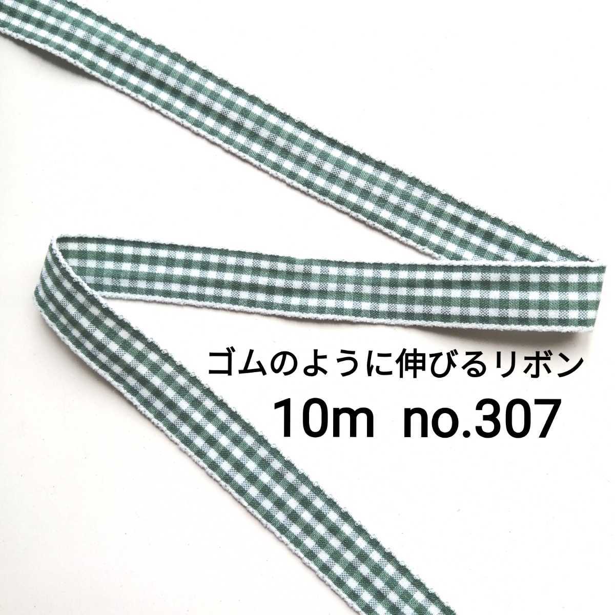 - no.307 抹茶 ストレッチチェックリボン 長さ約10m 幅約1.5cm☆ゴムのように伸びるリボン ストレッチ レース リボン ゴム ハンドメイド