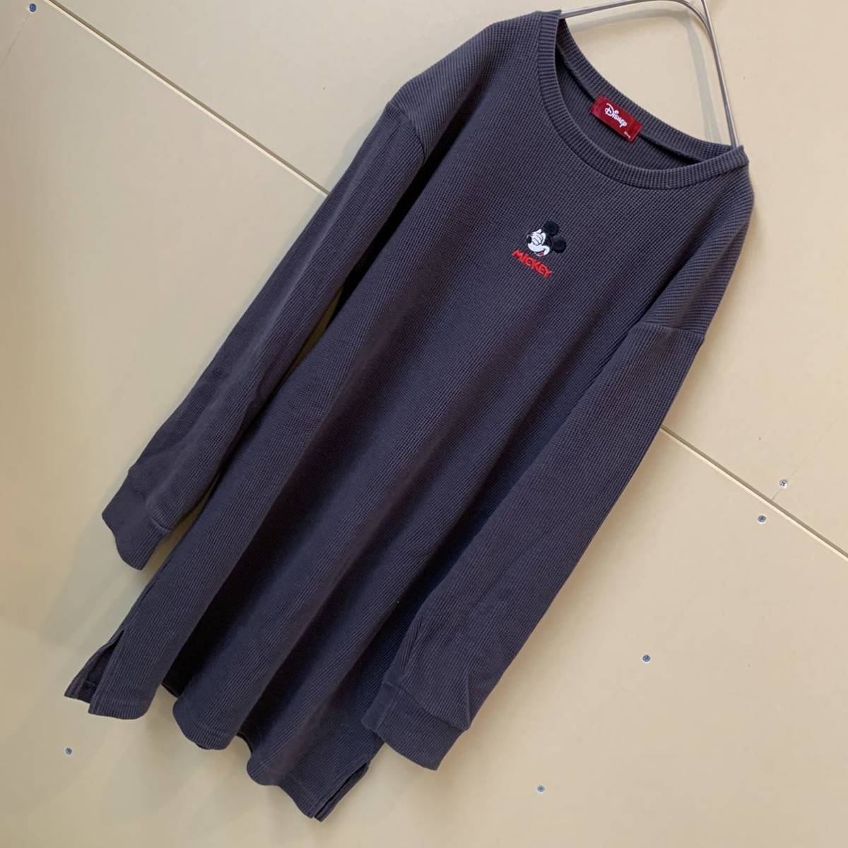 - 美品 Disney ミッキーマウス 刺繍 ワッフル素材 ワンピース トップ長袖 ワンピ 517