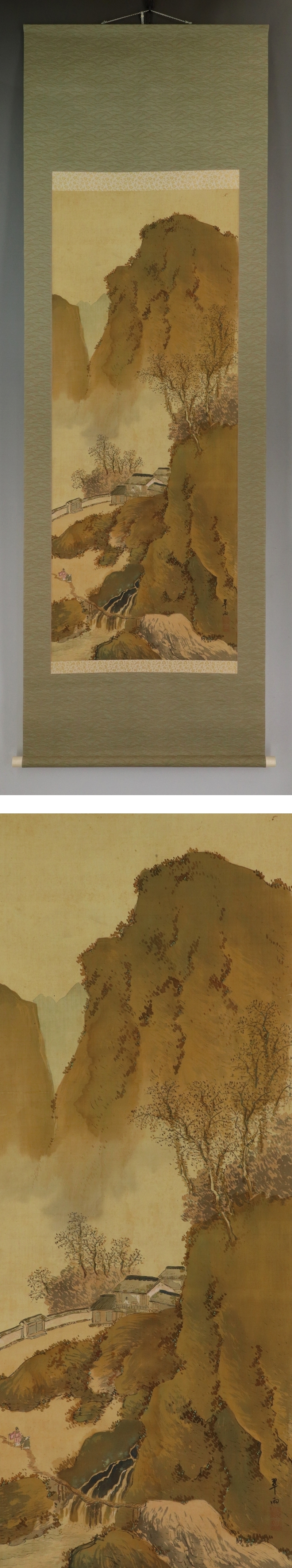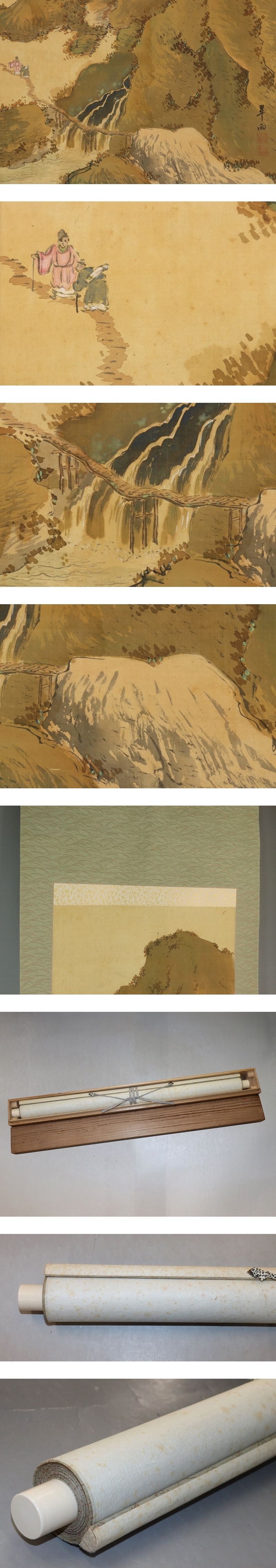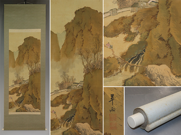 - 名品【真作】山田翠雨【秋景山水図】◆絹本◆合箱◆掛軸 u04007