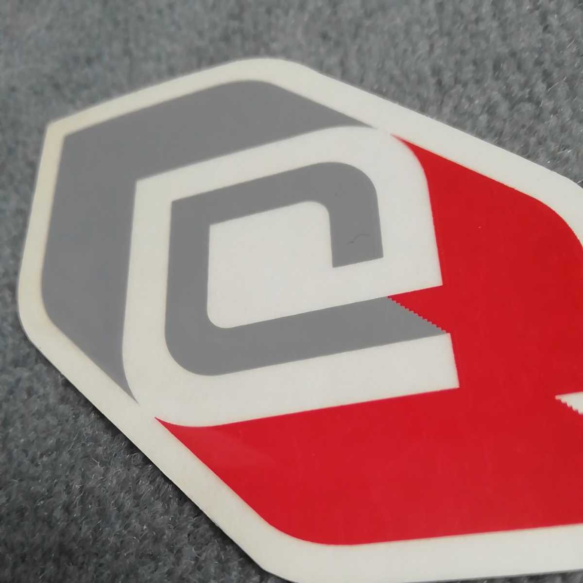 > 新品未使用正規品本物DROORSマークステッカー グレー/レッド 横約10.1cm 縦約5cm コーティング厚め 送料¥85~