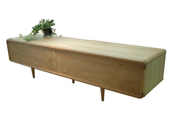 木目の美しいホワイトオーク材の突板と、やさしいカタチが魅力のTVボード。北欧風の丸みを帯びたフォルムは温かみを感じさせると共に、お子様にも安心なデザイン。ガラスに突板を貼った扉は、閉めたままでもリモコン操作が可能。内部を隠したままでお使いいただけ、ホコリも防げるうれしい機能。オープンと引出を組み合わせた収納は、AV機器やDVDなどたっぷりと収納して頂けます。