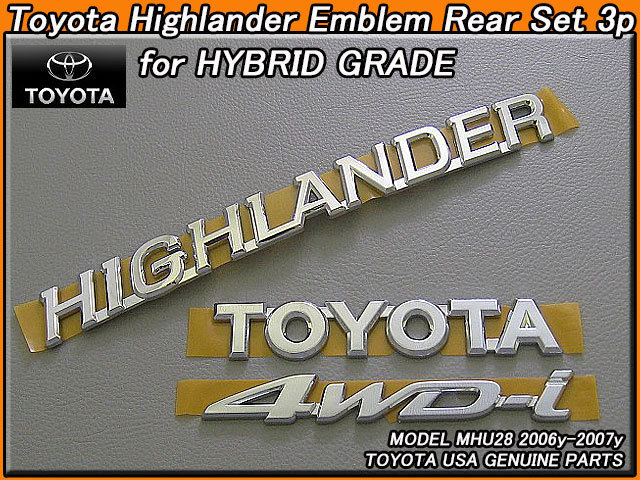 - クルーガーHYBRID/TOYOTA/MHU28トヨタHighlanderハイブリッド純正USエンブレムセット-リア3点/USDM北米仕様KLUGERハイランダー4輪駆動USA