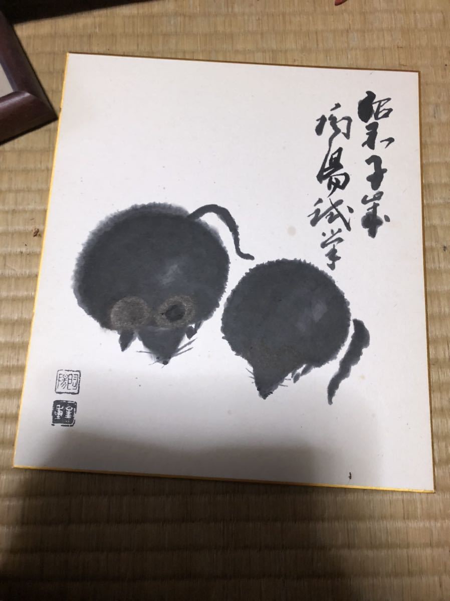 - 備前 人間国宝 金重陶陽 色紙 鼠 金重道明 識 直筆