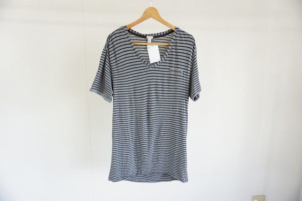 > 【即決】DIESEL ディーゼル メンズ 半袖Tシャツ ボーダー トップス グレー系 サイズ:L【749578】