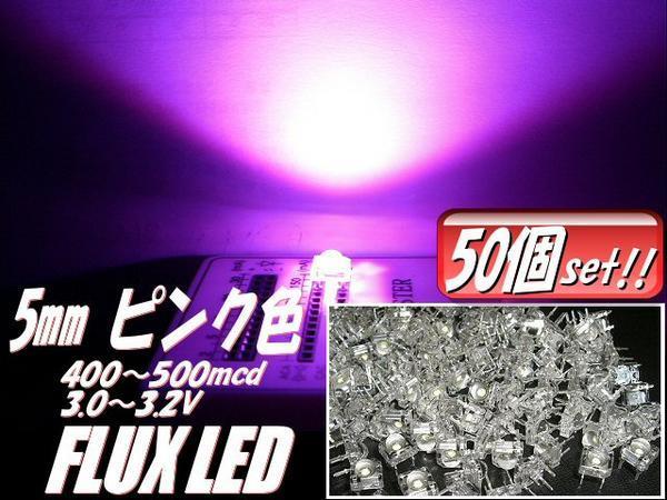 > 複数同梱可 高輝度 5mm FLUX LED ピンク まとめて 50個 セット 自作 電球 基盤 看板 mcd メール便可 D