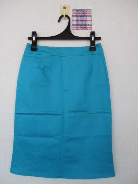 - ★膝丈タイトスカート 後ろスリット入り 無地 ターコイズブルー(S)