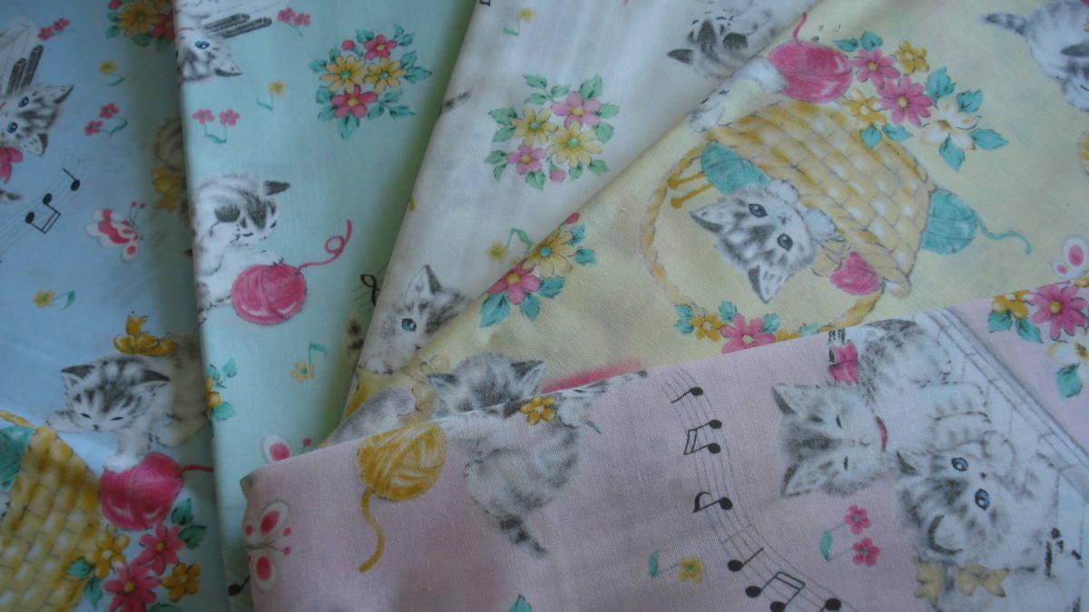 > カットクロス★キルトゲイト「QUIT GATE 旧柄・子猫」約20㎝×20㎝・5枚組/レトロアニマル・メルヘン★