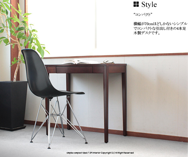 > 【送料無料】シェルト 0507 木製 引出 デスク 机 パソコンデスク 平机 シンプル ブラウン 省スペース ワンルーム sherto 70cm