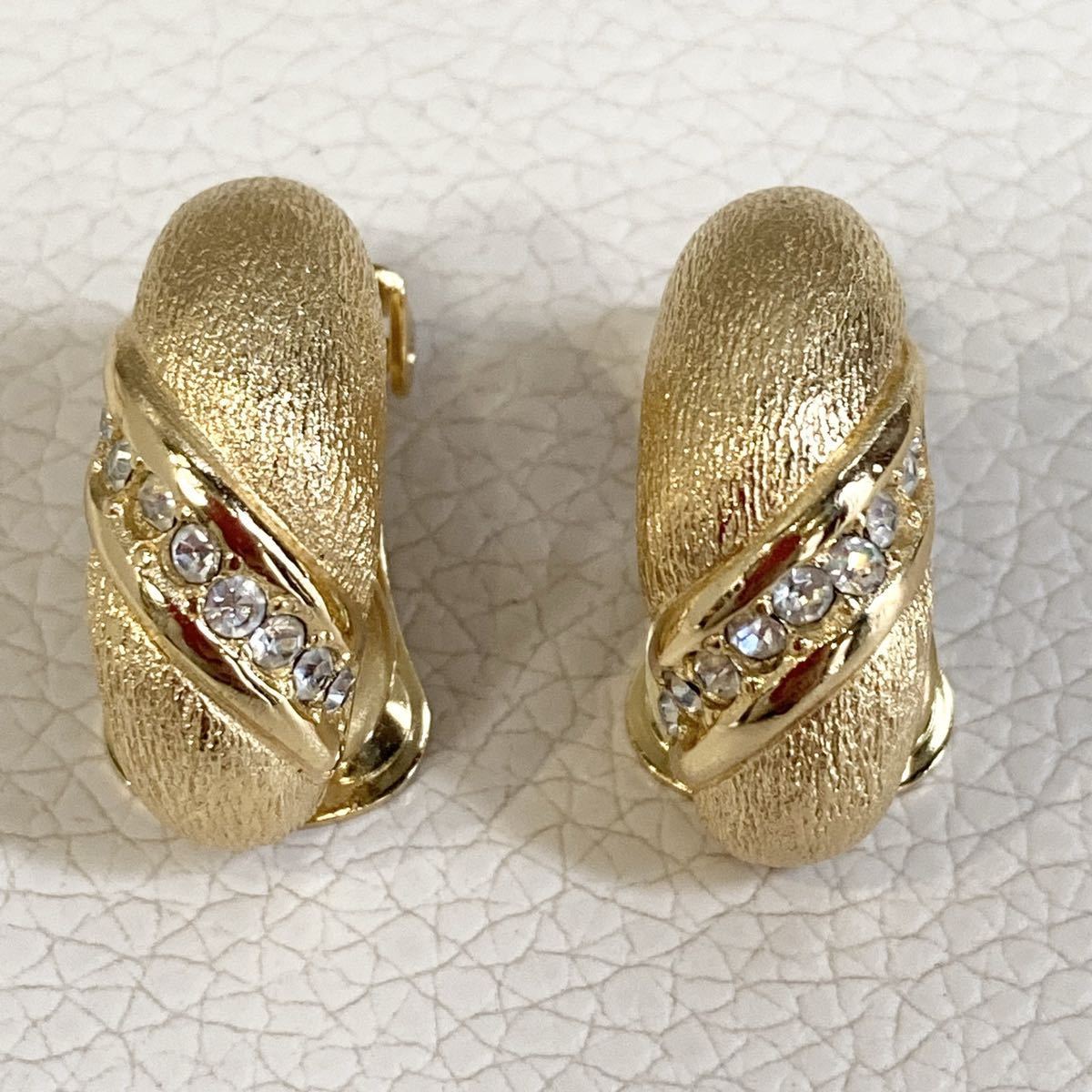 - Dior クリスチャン ディオール ゴールド ラインストーン イヤリング☆