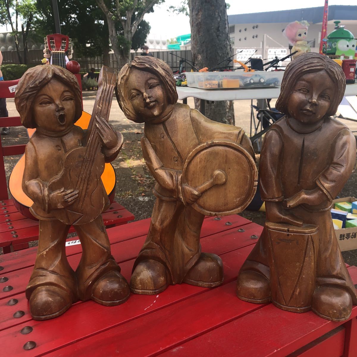 - 木製オブジェ 音楽隊 3個セット 木製 現状