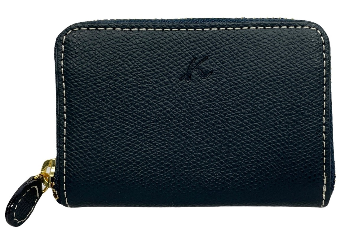 > KITAMURA キタムラ コインケース 小銭入れ ネイビー 紺 レザー レディース じゃばら ラウンドファスナー 【中古】