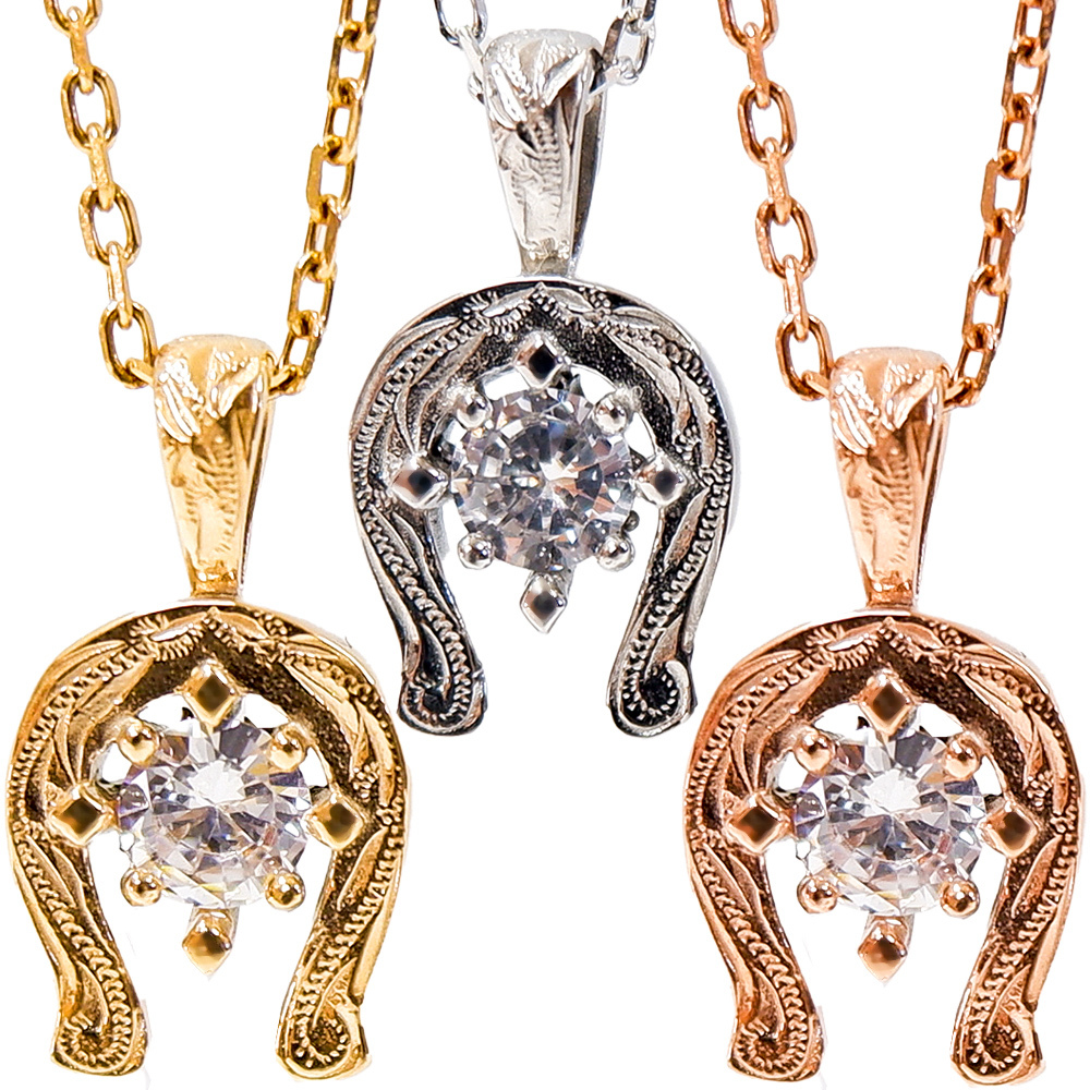 > ★SNS★ハワイアンジュエリー★アレルギー&温泉&海水浴ご使用OK★ステンレスネックレス★ゴールド&ピンクGD&シルバー&馬蹄&ジルコニア★