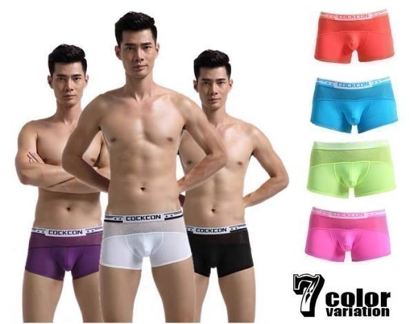 - 1円 切り替え メンズ ボクサーパンツ アイスシルク シースルー 男性 下着 メッシュ 透け ローライズ H0027 パープル M