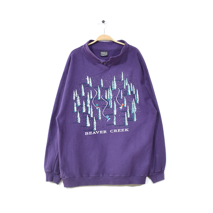 > 【送料無料】 90S USA製 ヴィンテージ オールド 襟付き スキー柄 スウェット トレーナー メンズL パープル 紫色 古着 CF0413