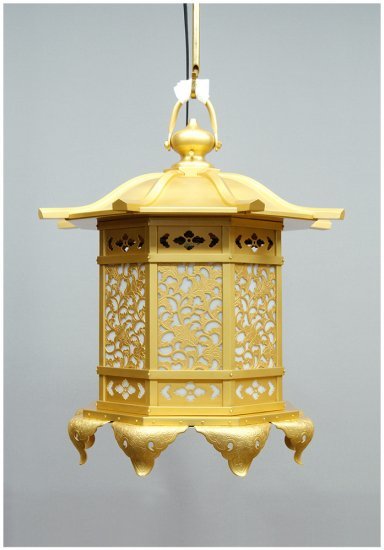 - 【受注生産品】 八角型吊灯籠 極上品 1対(2台) 火袋角径24cm(8寸) 真鍮製 本金消メッキ仕上げ LED電球付き