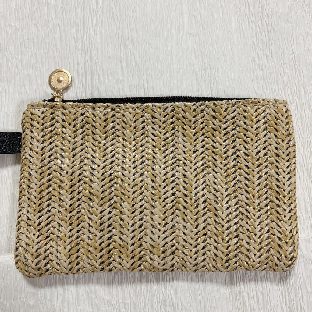 - 匿名配送 送料無料 未使用 ストロー素材 クラッチバッグ フラットポーチ ミニバッグ ミニマリスト ストローバッグ ベージュ