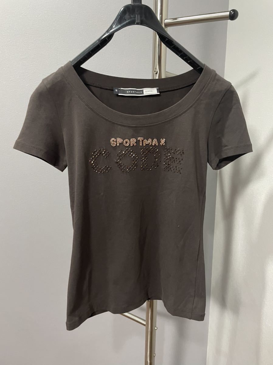- スポーツマックスSPORTMAX半袖カットソーTシャツ茶ブラウンロゴレディース