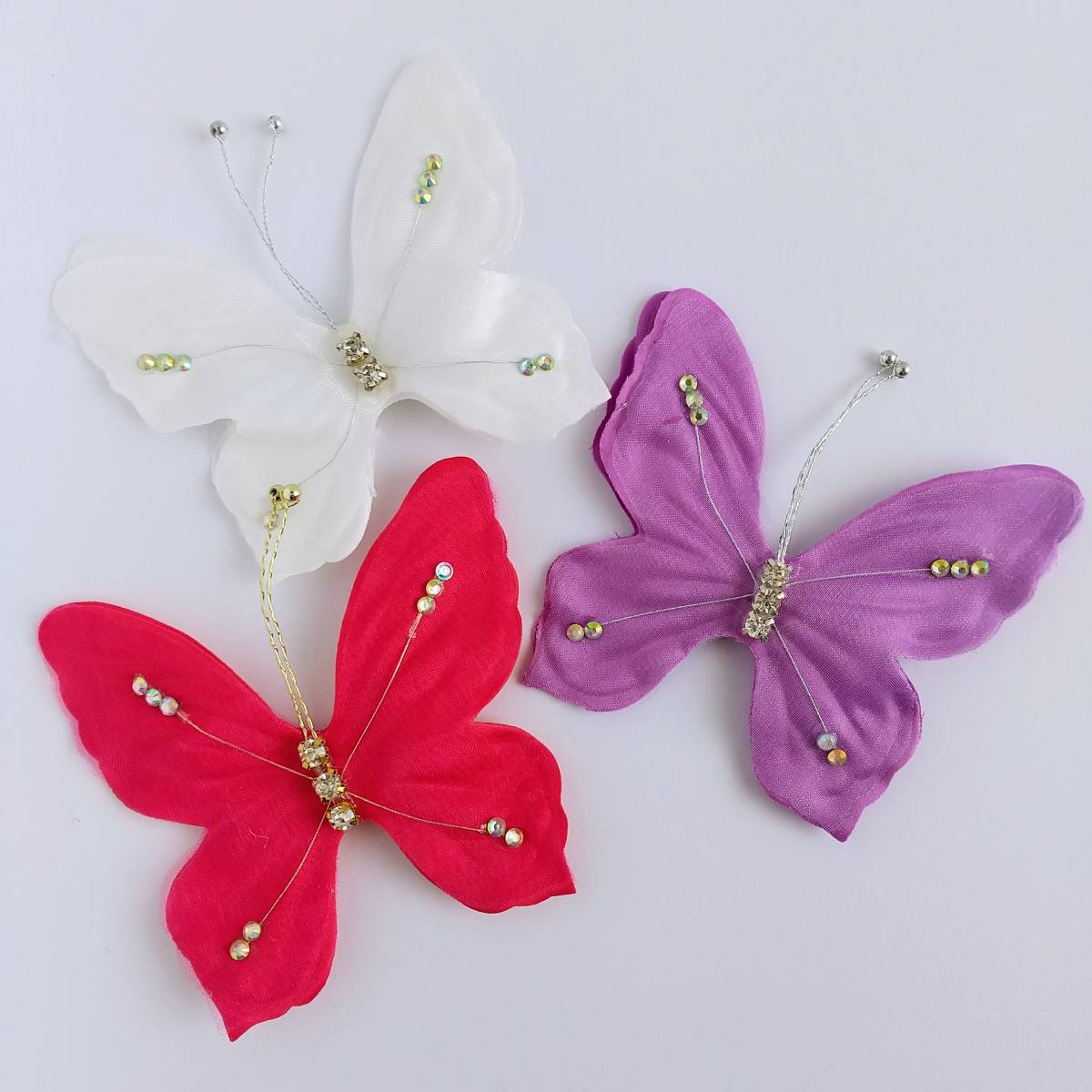 - ☆3点セット☆蝶モチーフのアクセサリー/ヘアアクセサリー/ブローチ/パーティー/デモンストレーション/衣装小物☆中古