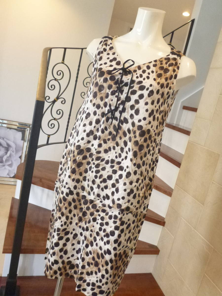 - 新品同様 Unacaアナカ★茶×ベージュ レオパード柄 ワンピース M相当