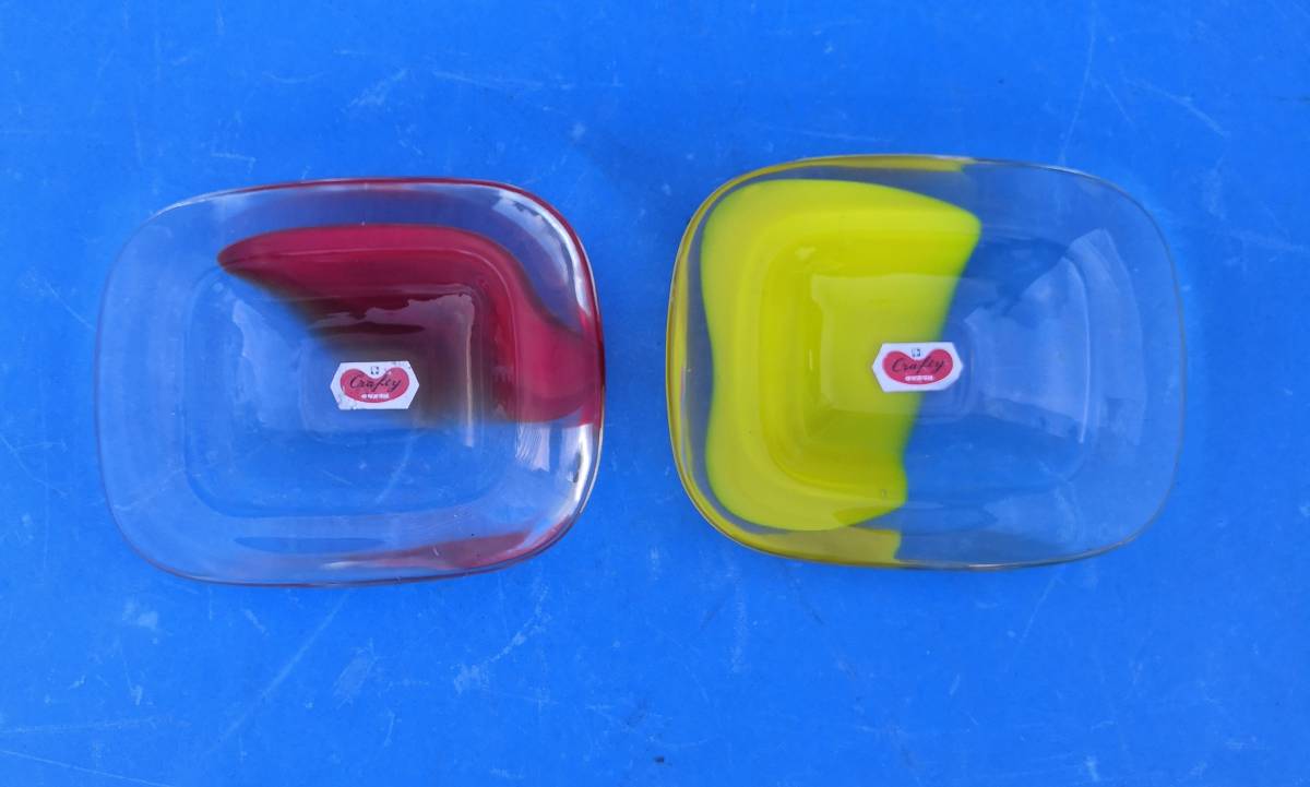 - 昭和レトロガラスで出来た厚みの有る容器2色セット重いです