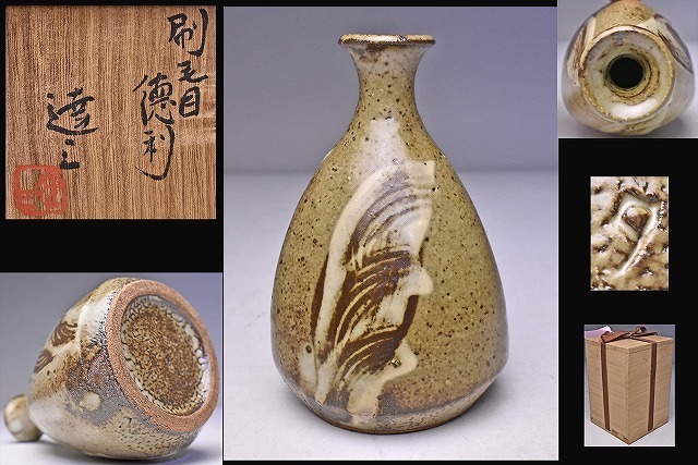 > 島岡達三★ 刷毛目 徳利 ★ 人間国宝 ★ 師:浜田庄司 ★ 珍品 ★ 三角の造形に景色良い逸品 ★ Shimaoka Tatsuzo ★ 検 ゲルトクナッパー