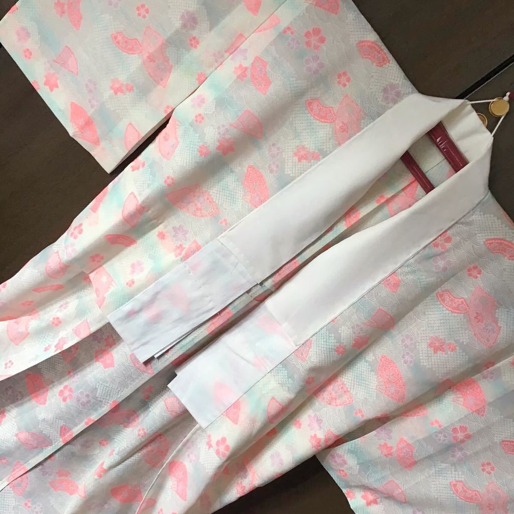 - 単衣♪裄64♪モスリン♪手縫い誂え♪襟抜き&半襟付♪腰揚げ済