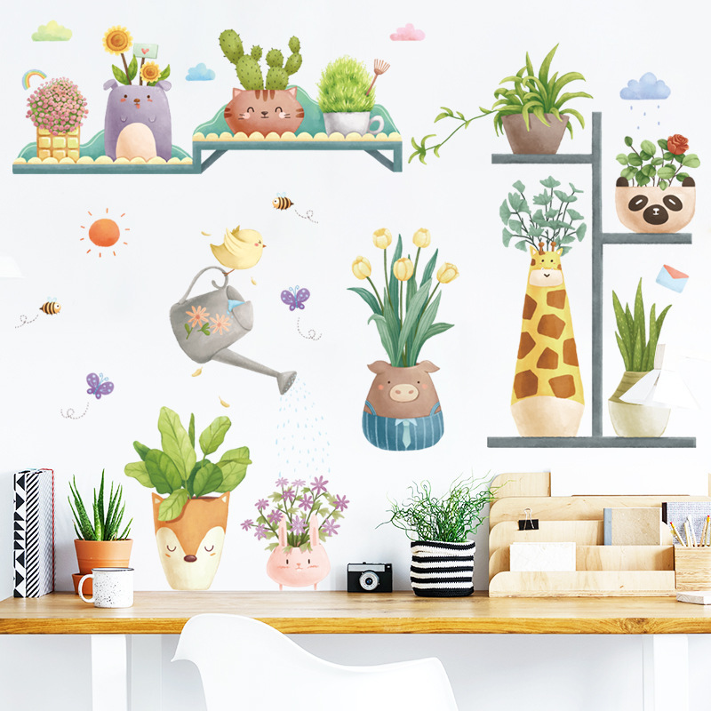 - hesperus ウォールステッカー YAD063 ガーデン 植木鉢 動物 キリン 癒す DIY 壁紙 インテリアシート 剥がせるシール 送料無料