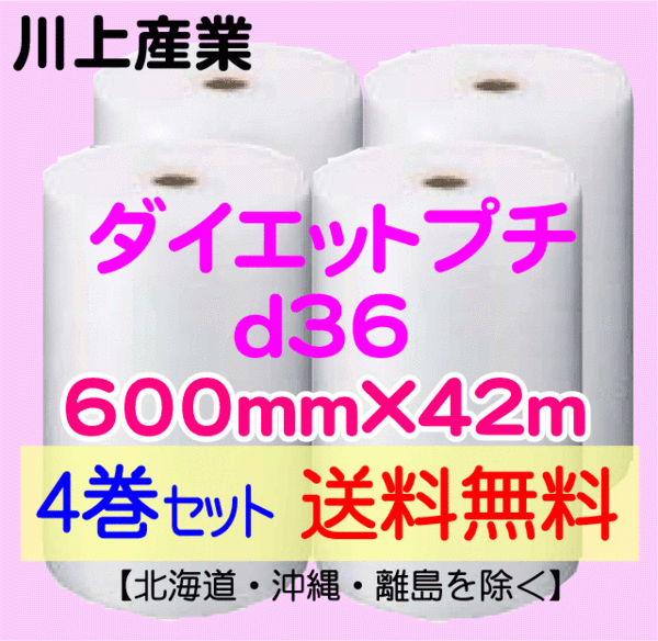 - 【川上産業 直送 4巻set 送料無料】d36 600mm×42m エアークッション エアパッキン プチプチ エアキャップ 気泡緩衝材