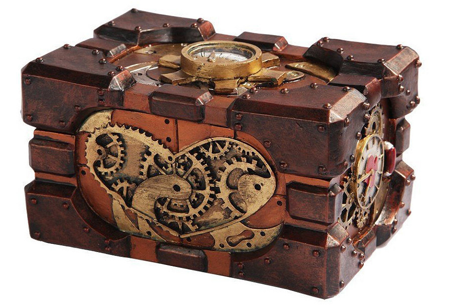 - スチームパンク風 圧力計を持つ ゲージ・ボックス小物箱 彫像長さ 約14cm 隠し箱/ 宝石箱 誕生日お祝い(輸入品