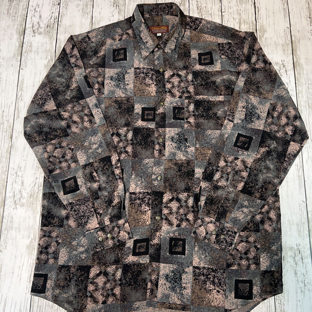 - Wing Hero 総柄 柄シャツ レトロ アート ビンテージ 長袖シャツ ポリエステル100%