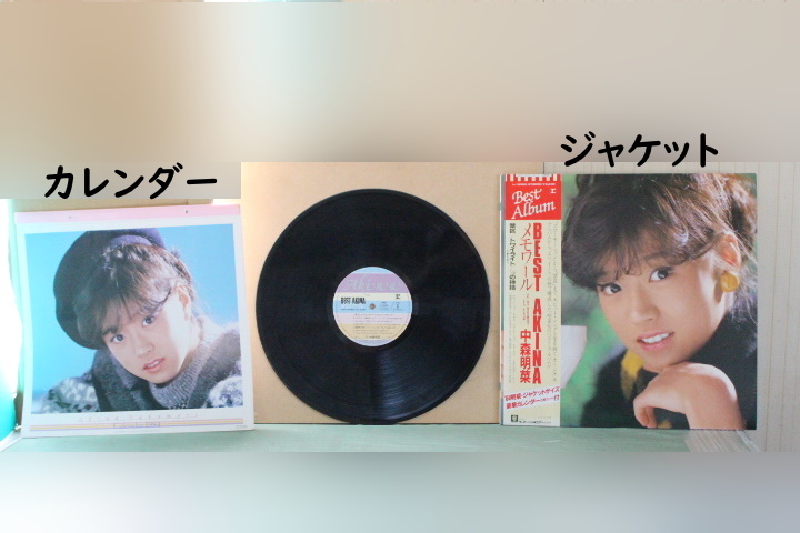 > ▲つ-478 中森明菜 レコード 1983年 中古 初ベスト アルバム メモワール 帯付き カレンダー付(非売品)