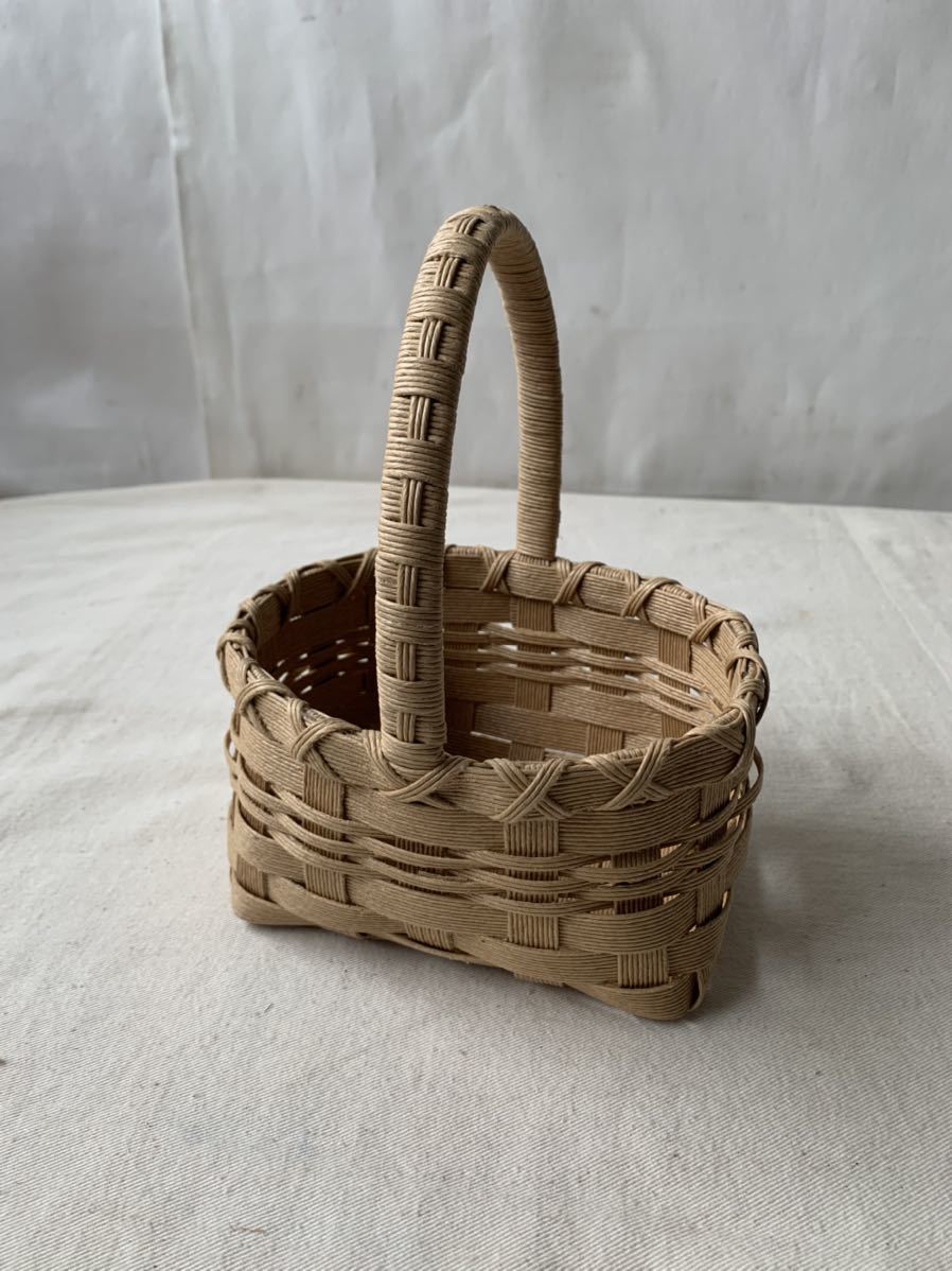 - 美品 しっかり編まれた小振りな持ち手付籠カゴかご インテリアディスプレイ花器花入れバスケット小物入れ古道具収納陳列レトロクウネル飾り