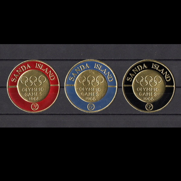 - ■サンダ島(スコットランド)切手 1968年 メキシコ五輪 / オリンピック 金箔+エナメルカラー 3種完