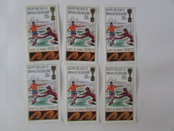 - スポーツ切手 ルワンダ ワールドカップサッカー/メキシコ 1種6枚 1970