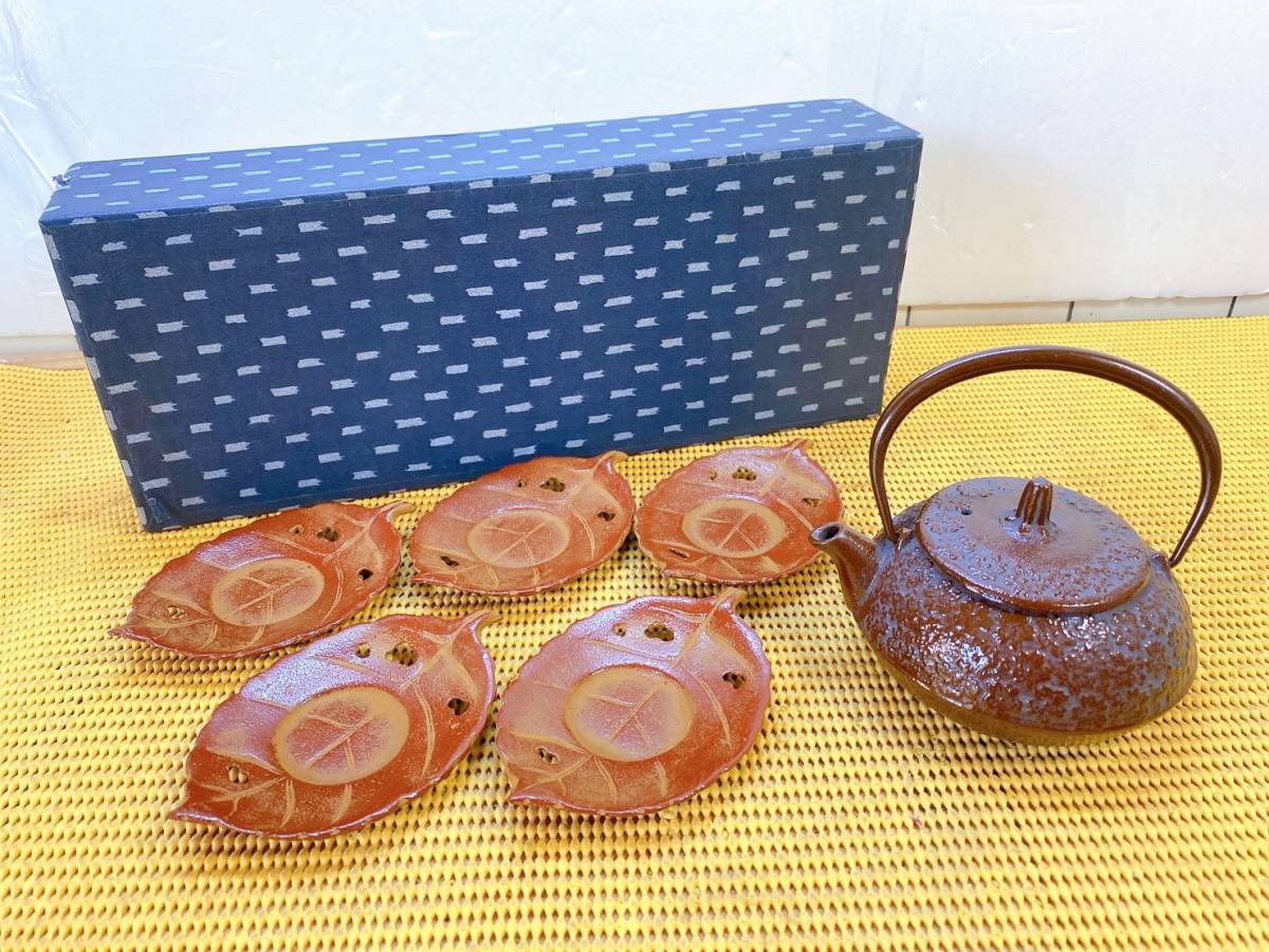 - 未使用 貴重 南部鉄器 鉄瓶 急須 木の葉皿 茶器 伝統工芸 南部文秀堂 コレクション 長期保管品 現状品