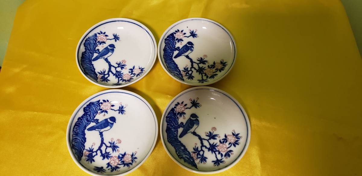 - 江戸後期 明治初期 皿 鳥図4枚 直径約12.5Cm 高さ約2.5Cm