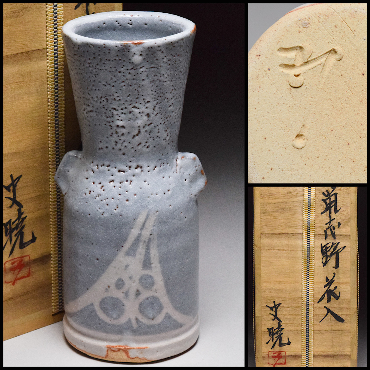 - 【八八八】備前焼 藤原史暁 鼡志野 花入 ◆共箱 共布 茶道具 備前 【b-114】